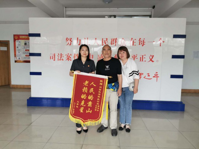 6月2日下午,王某手拿锦旗来到涧西区法院执行局,衷心感谢执行干警王育博,他说:“感谢您仅仅用了两个月的时间就把我这十三年的陈年积案解决了,真心感谢执行干警的辛勤努力,你们真是人民的靠山,老赖的克星。”